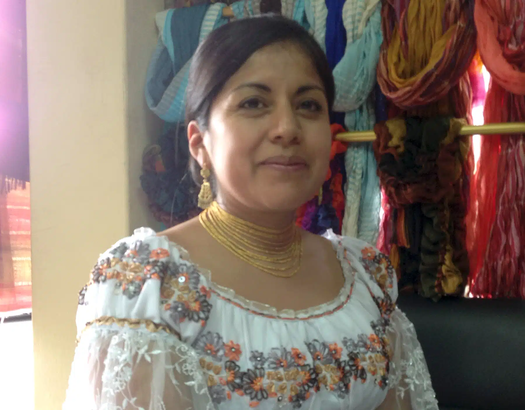 Gladys and her husband, Roberto, have two children together: Adela was born in 1998 and Mabel was born in 2001. Gladys works with her husband, her sister, her sister’s husband, and a few other employees from her workshop at home. She uses acrylic yarn and cotton fabrics to make shawls, scarves, blouses and headbands. She inherited the trade from her parents and has been selling her products since 2000. Her goal is to increase her production and become a small business one day.
