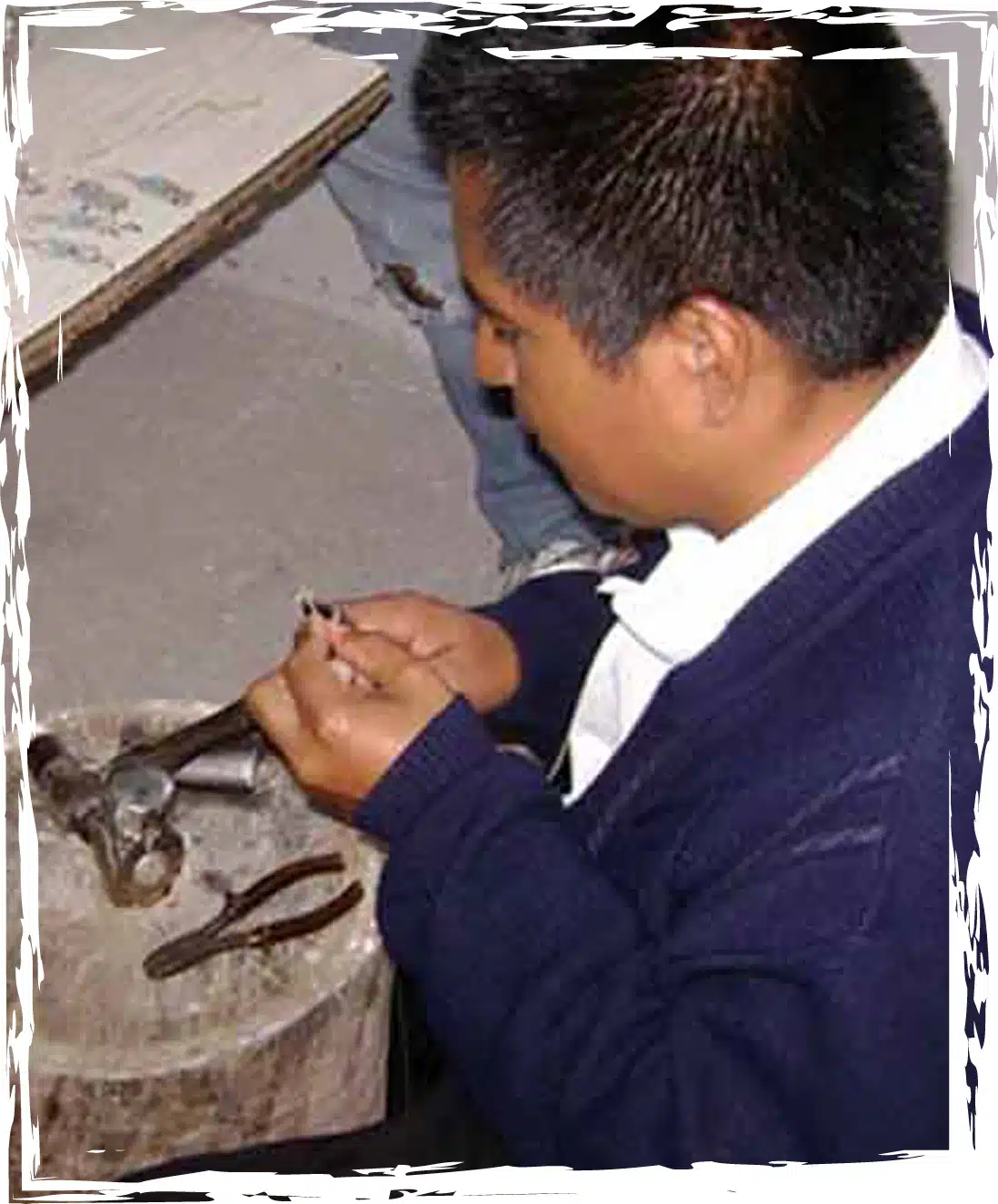 Mesías is a jewelry maker who specializes in alpaca, semi precious stones, and a glass form called murano. As a result of a childhood injury that left his knee permanently damaged, Mesías was unable to work alongside his parents on the family farm. He was hired as an apprentice in a leather artisan’s workshop where he was able to sit and work. Since then, Mesías has opened his own workshop and has three workers: Cristina, Marcia, and Ruth, who have worked for him for three years. With the wages he has earned as an artisan, Mesías was able to purchase the materials to build a humble home in Otavalo for his wife and four children.