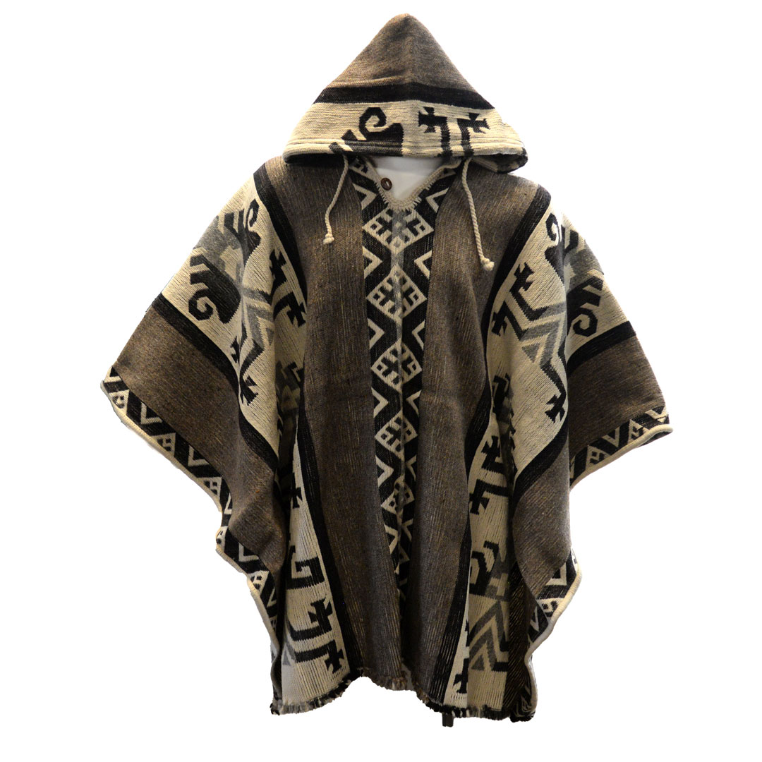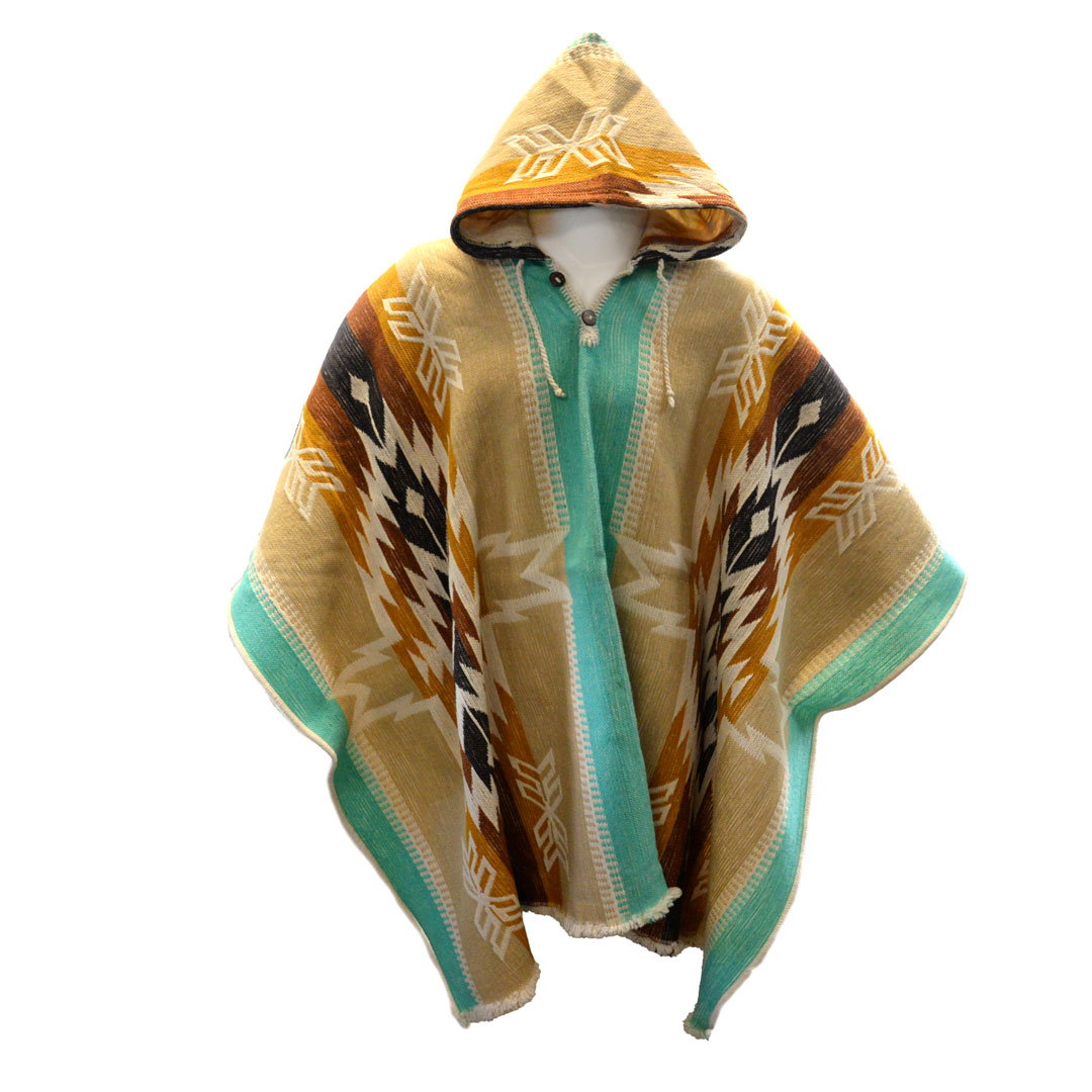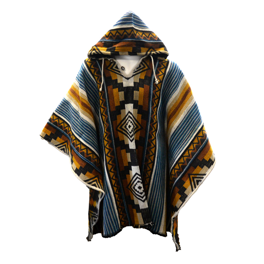 Colorful and cozy hooded poncho made from 100% wool. Available in geometric and tribal patterns. Made in Ecuador.