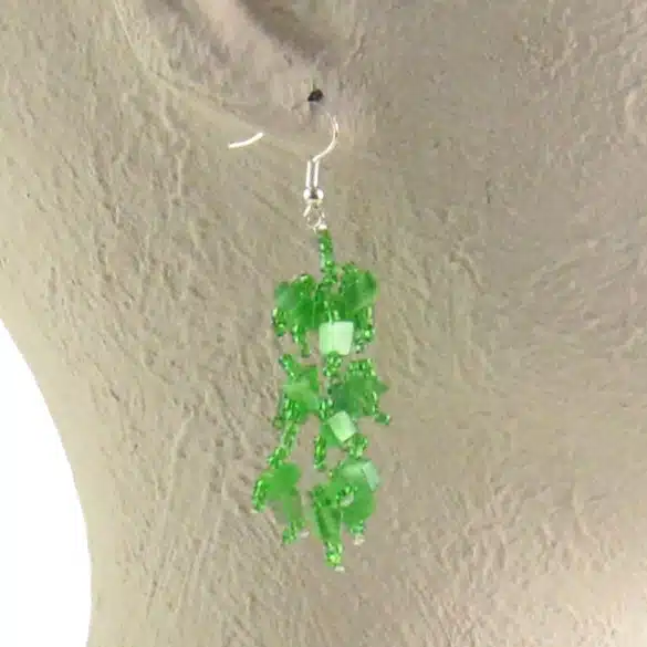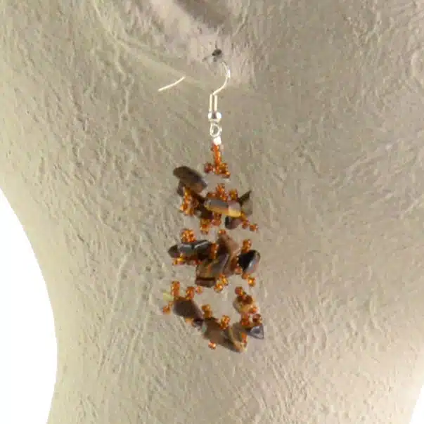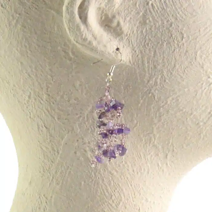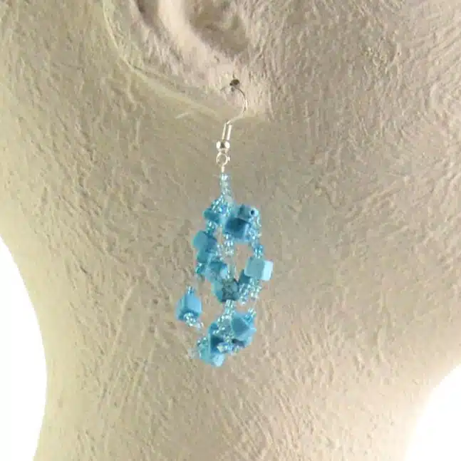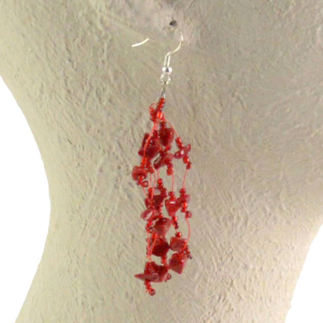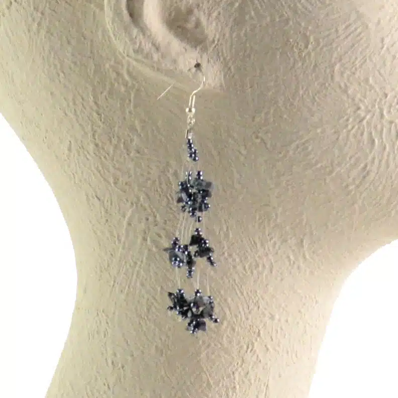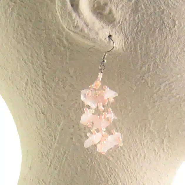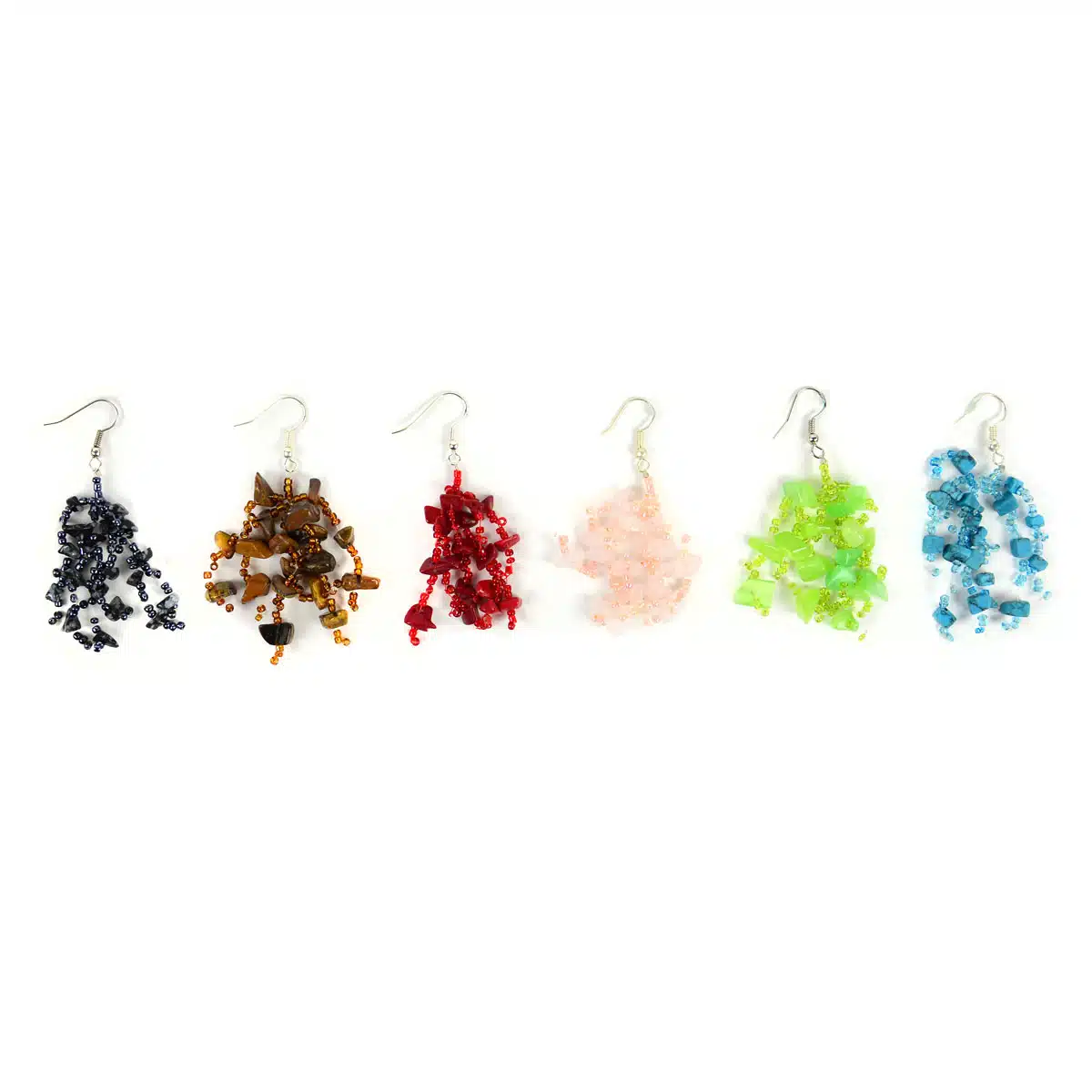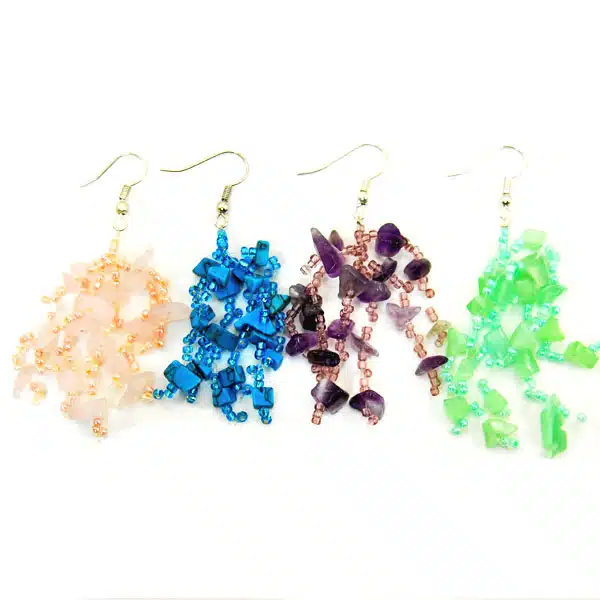 Chips of colored glass and pearlescent beads on clear thread. Order an assortment or indicate color preferences in the Product Note box when ordering. Colors available: Black, Blue, Brown, Navy, Pink, Purple, Tan, White and Red.
