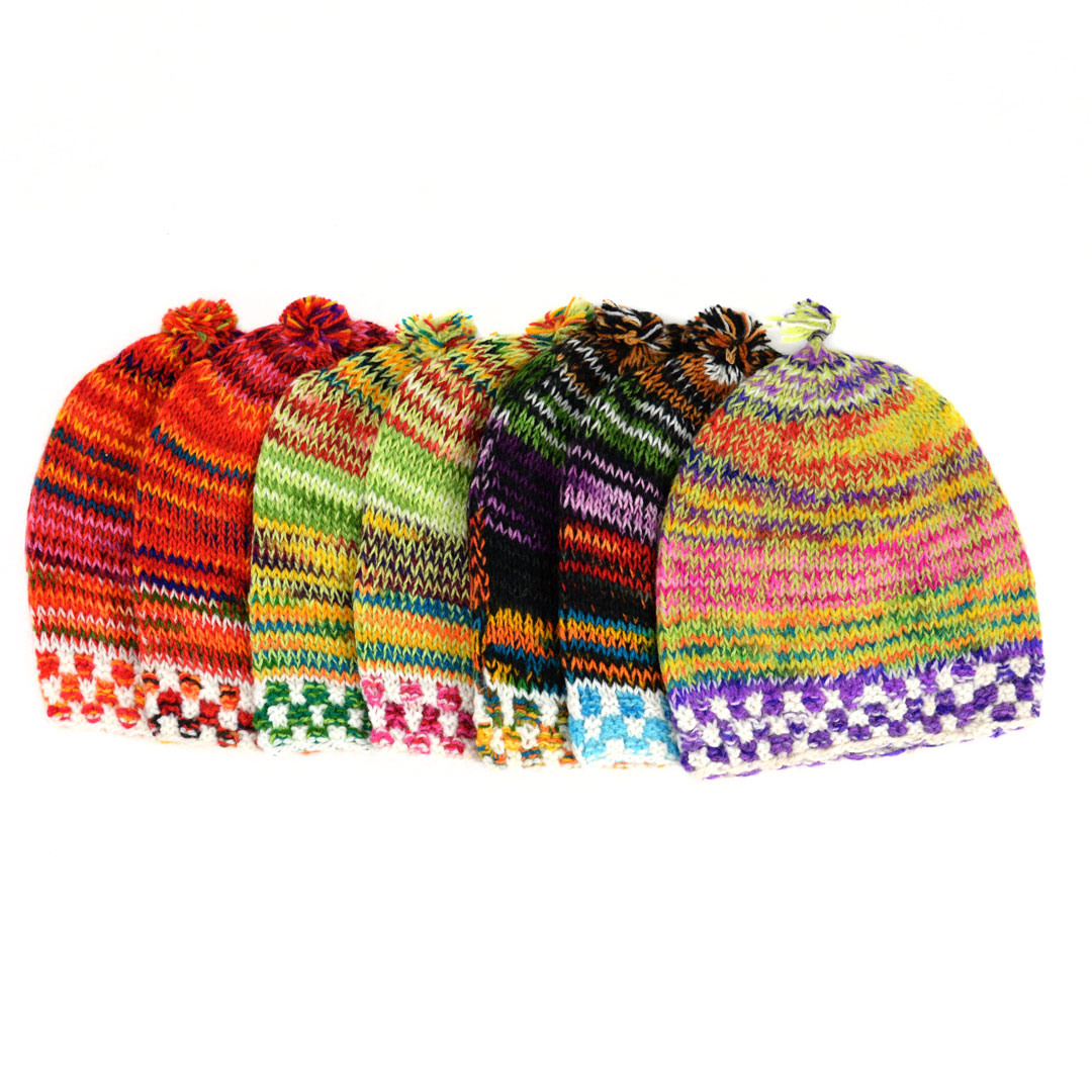 Warm, soft and funky. Available in cool and warm tones. 30% Alpaca, 70% Acrylic blend. A wide variety of color combinations available. Made in Perú.