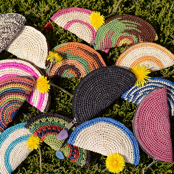 Hand woven Agave grass displayed in different colors and designs. 5" x 2.5". Opens to a full circle, perfect for coins or earbuds. Lined interior. Made in Ecuador