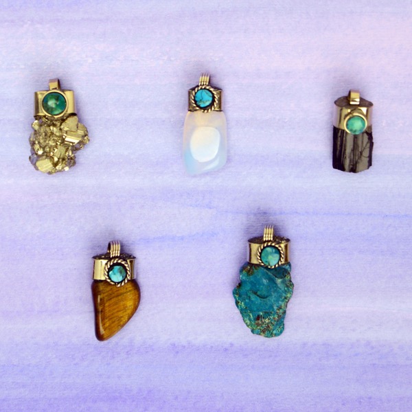 Nuggets of semi-precious stone set in a simple cap with additional bezel and stone. Approximate length: 1". Made in Perú.
