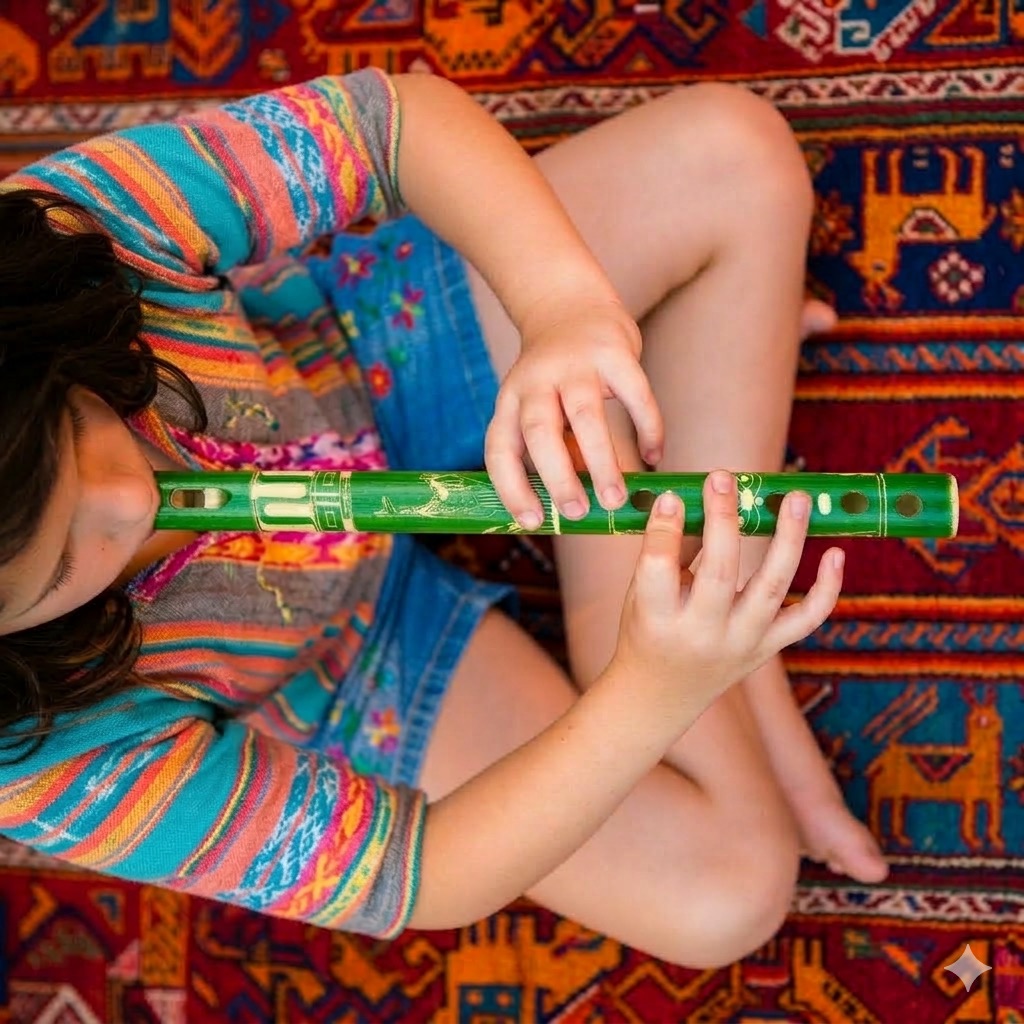 Add a splash of color and culture to your musical selection with our traditional Peruvian bamboo flutes. Each 14-inch instrument is hand-stained with non-toxic dyes and features etched designs of llamas and Andean scenery. These functional woodwinds offer a bright tone, making them ideal for beginners and educators. Individually handcrafted by skilled artisans, these flutes are an affordable, high-impulse addition to any kid’s corner or world music section. Made in Peru. Need more? We are currently stocking more of our 10" flutes (SKU 44803).