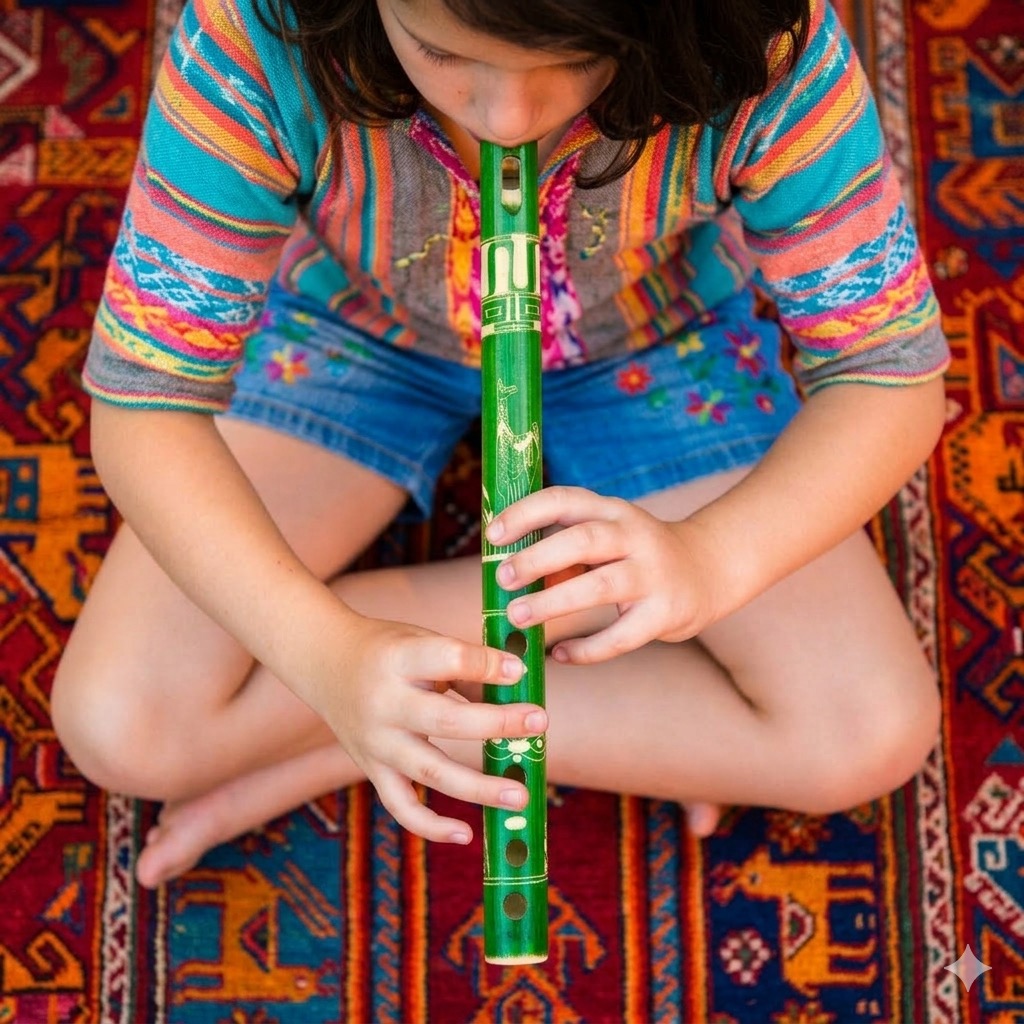 Add a splash of color and culture to your musical selection with our traditional Peruvian bamboo flutes. Each 10-inch instrument is hand-stained with non-toxic dyes and features hand-etched designs of llamas and Andean scenery. These functional woodwinds offer a bright tone, making them ideal for beginners and educators. Individually handcrafted by skilled artisans, these flutes are an affordable, high-impulse addition to any kid’s corner or world music section. Made in Peru.