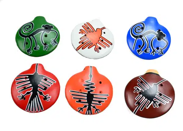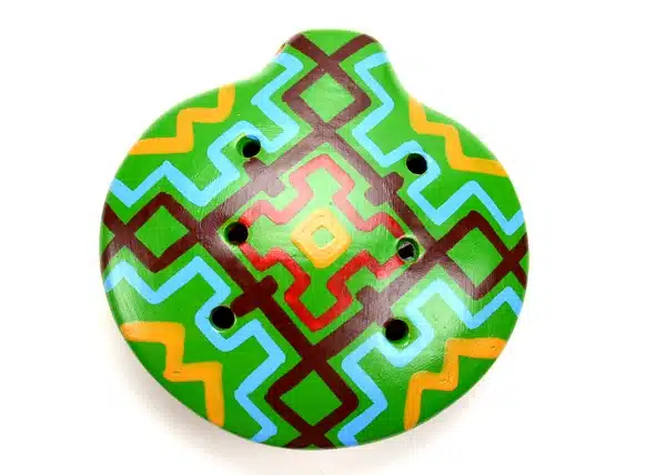 A traditional Andean flute that comes in a wide variety of colors and traditional motifs. Made in Peru.