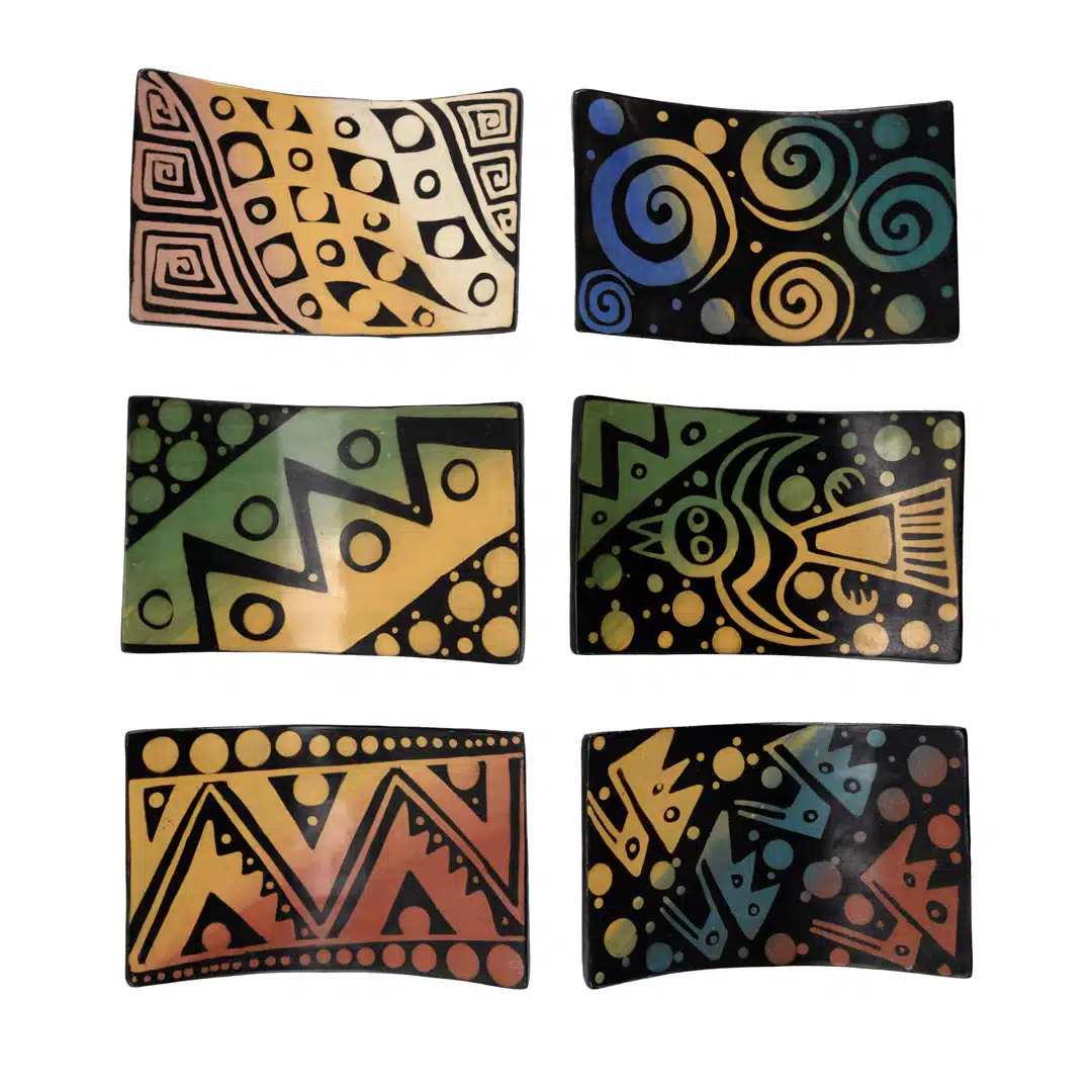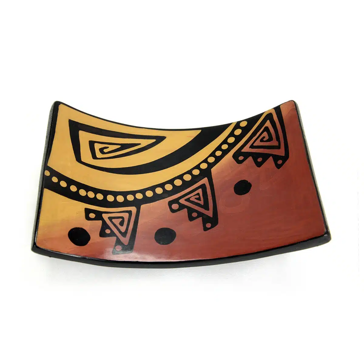 Each chulacanas rectangular plate has their own unique pattern and color combinations. Made in Perú.