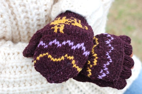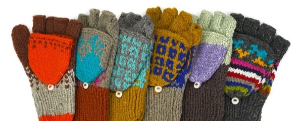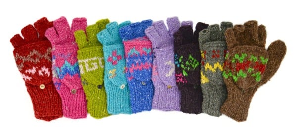 Fingerless gloves with a convertible mitten top. Available in an endless variety of color combos! 50/50 cotton/wool. Made in Ecuador.