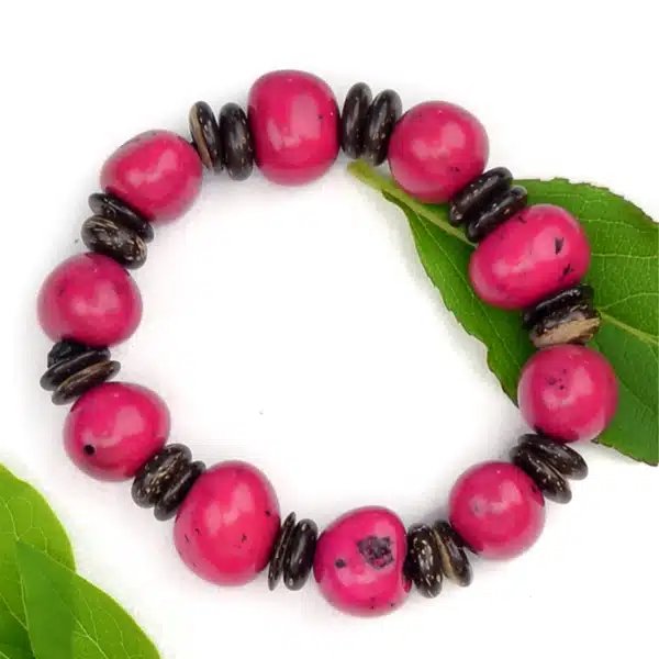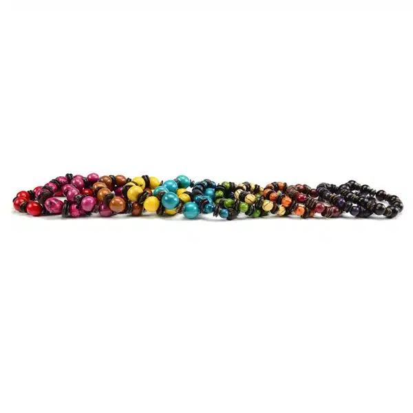 Dyed pambil seeds and coconut on elastic. Variety of colors. Made in Ecuador.
