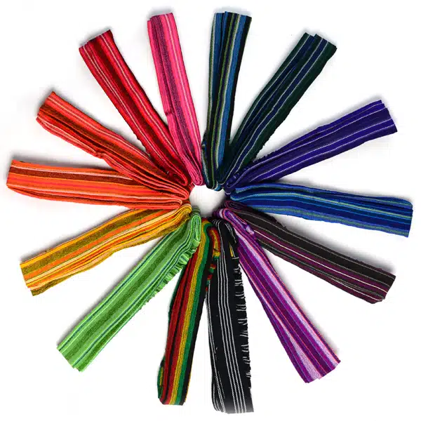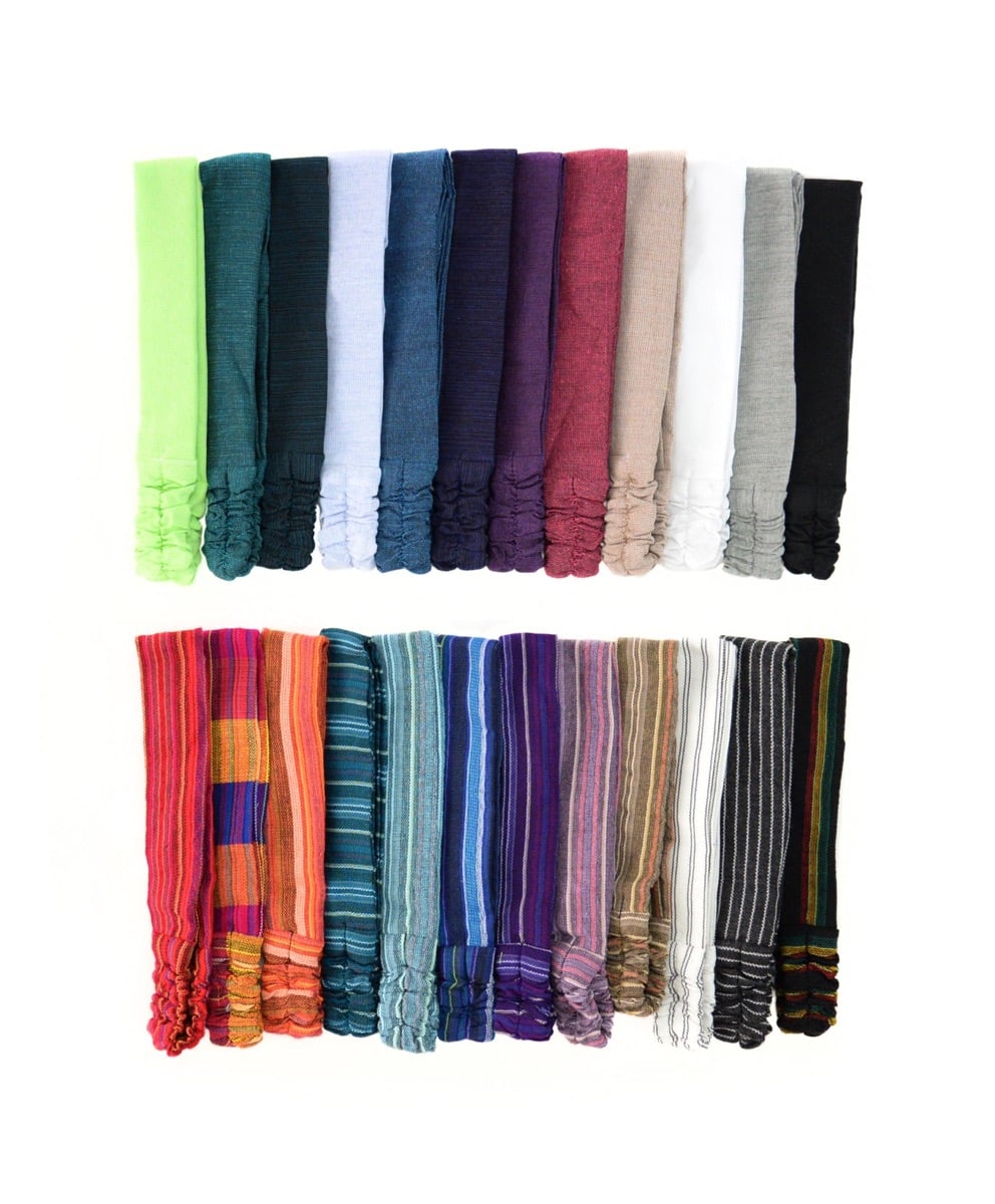 Lightweight, soft and colorful. This versatile design can be worn narrow or opened up for a wider look. Elastic back. Made in Ecuador.