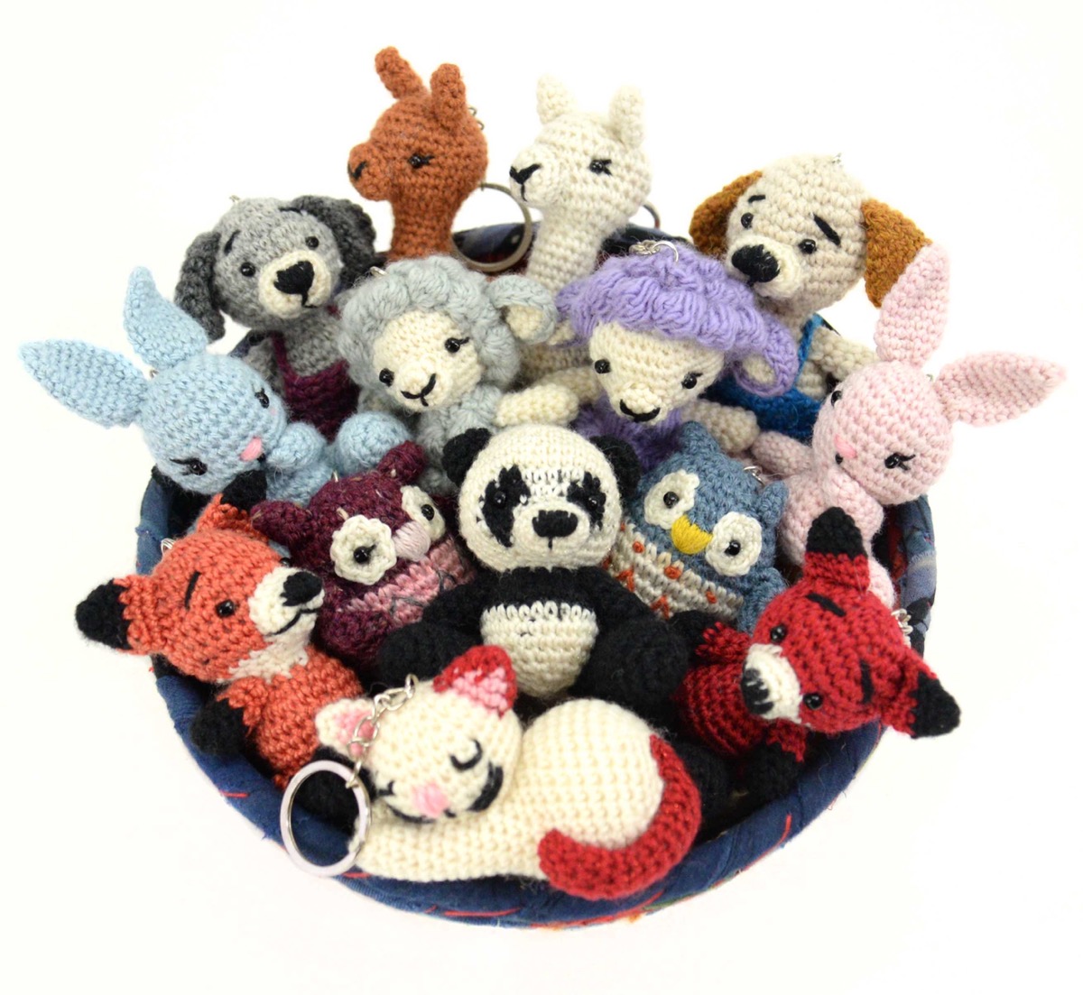 Our 90-day buy-back guarantee makes these high-velocity impulse items a risk-free addition to any register display. Each is hand-crocheted by Peruvian mothers and grandmothers in an ever-growing variety of vibrant animals and colors. For specific animal requests, please order 68 weeks in advance. 24.5"H x 23"W.Made in Peru.