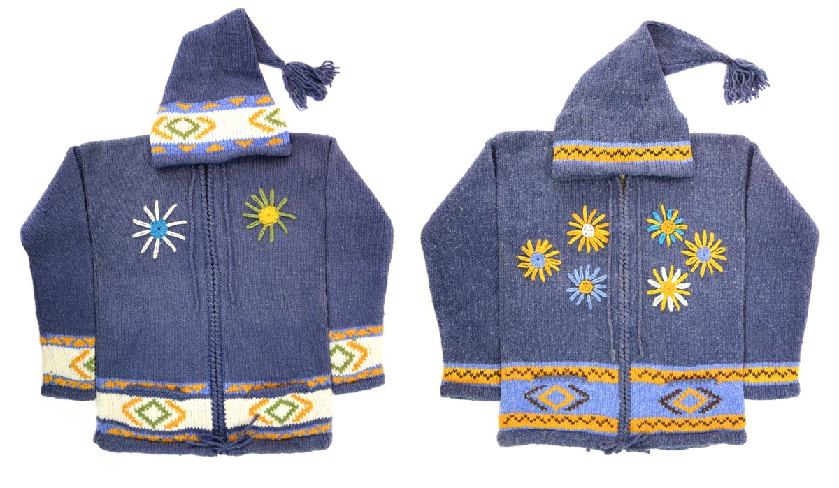 Two Cotton/Wool blend Hand-knitted zip up sweaters with hood. Adult size M. Made in Ecuador.