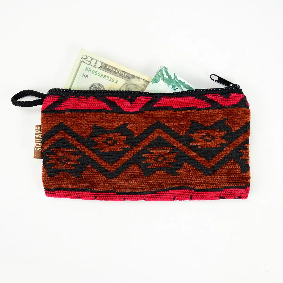 Lined acrylic pouch in a variety of bold colors and patterns. Made in Ecuador.