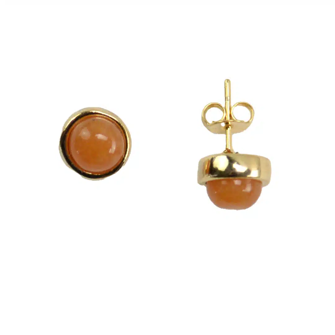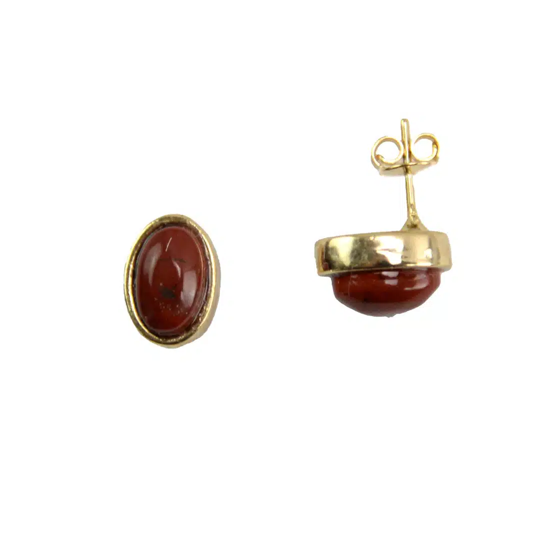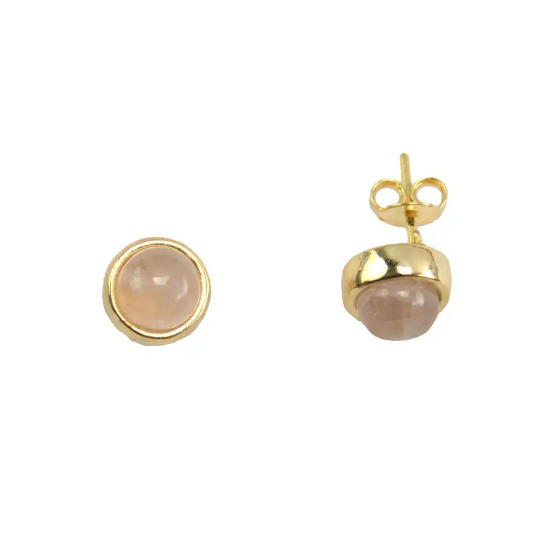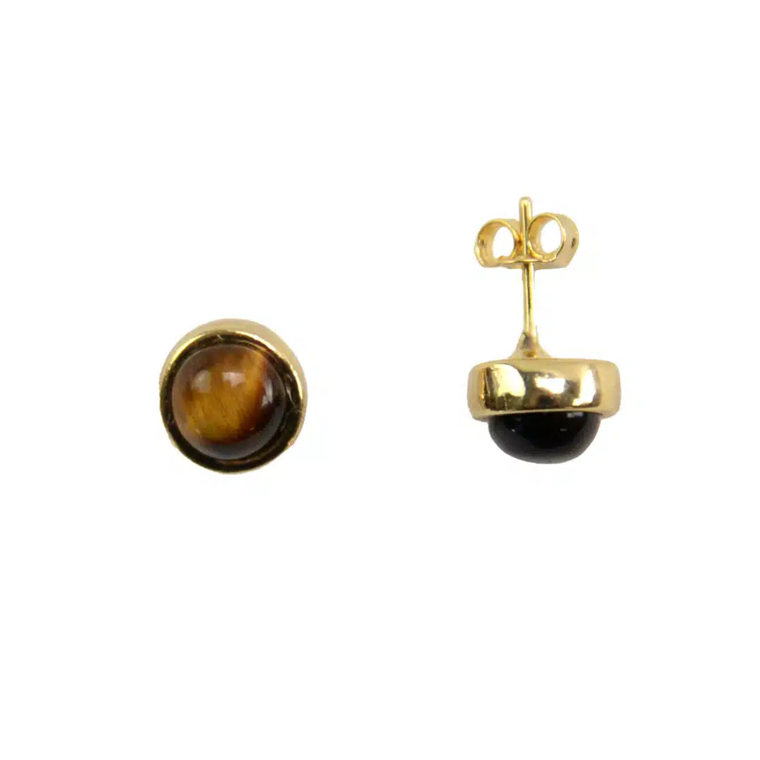 Tasteful 6 mm gold plated studs featuring semiprecious stone. Available in oval or circle styles. Made in Brazil.