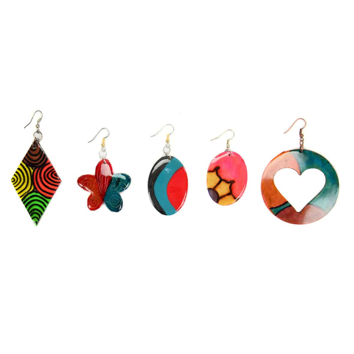 A colorful assortment of bold gourd earrings. Variety of designs and shapes available.