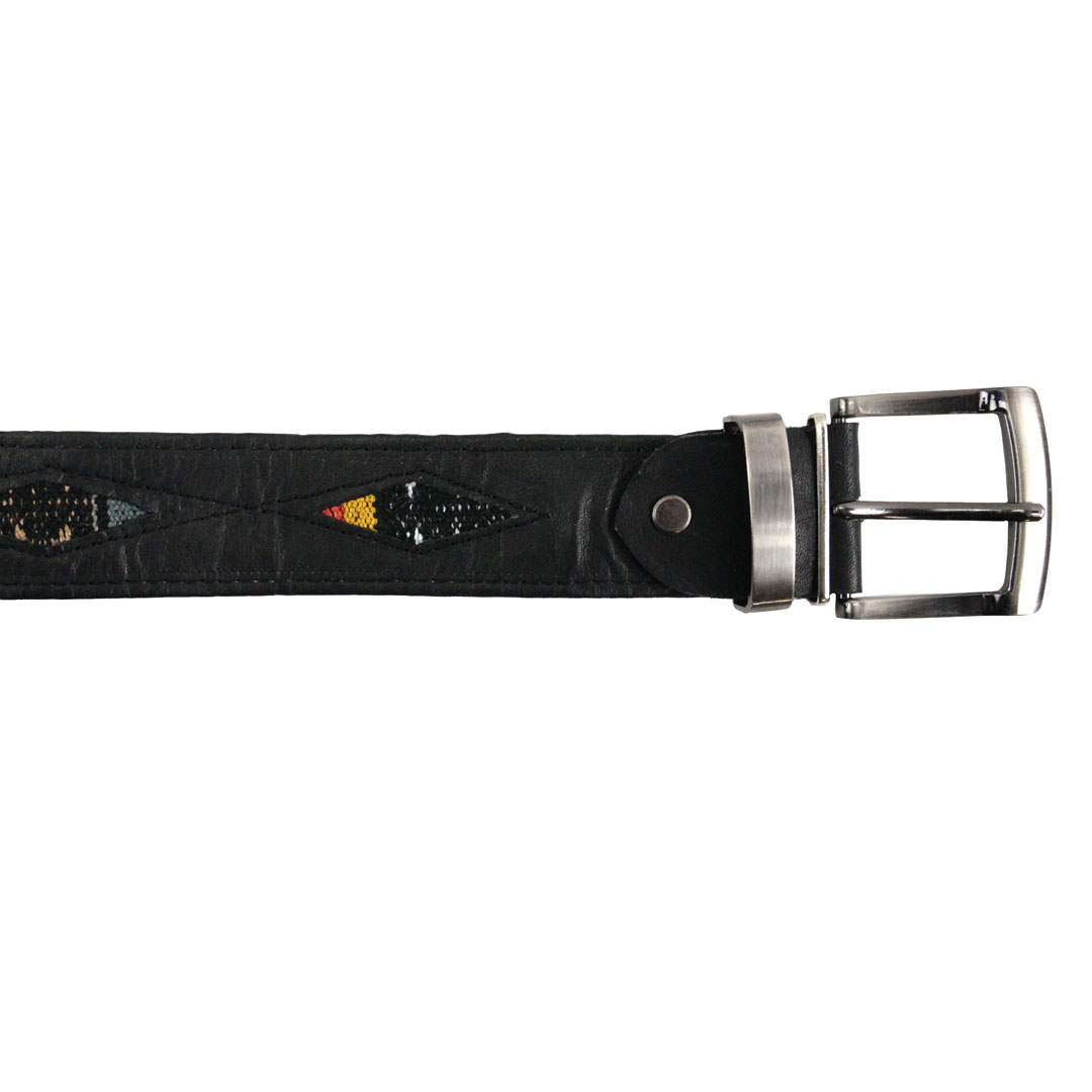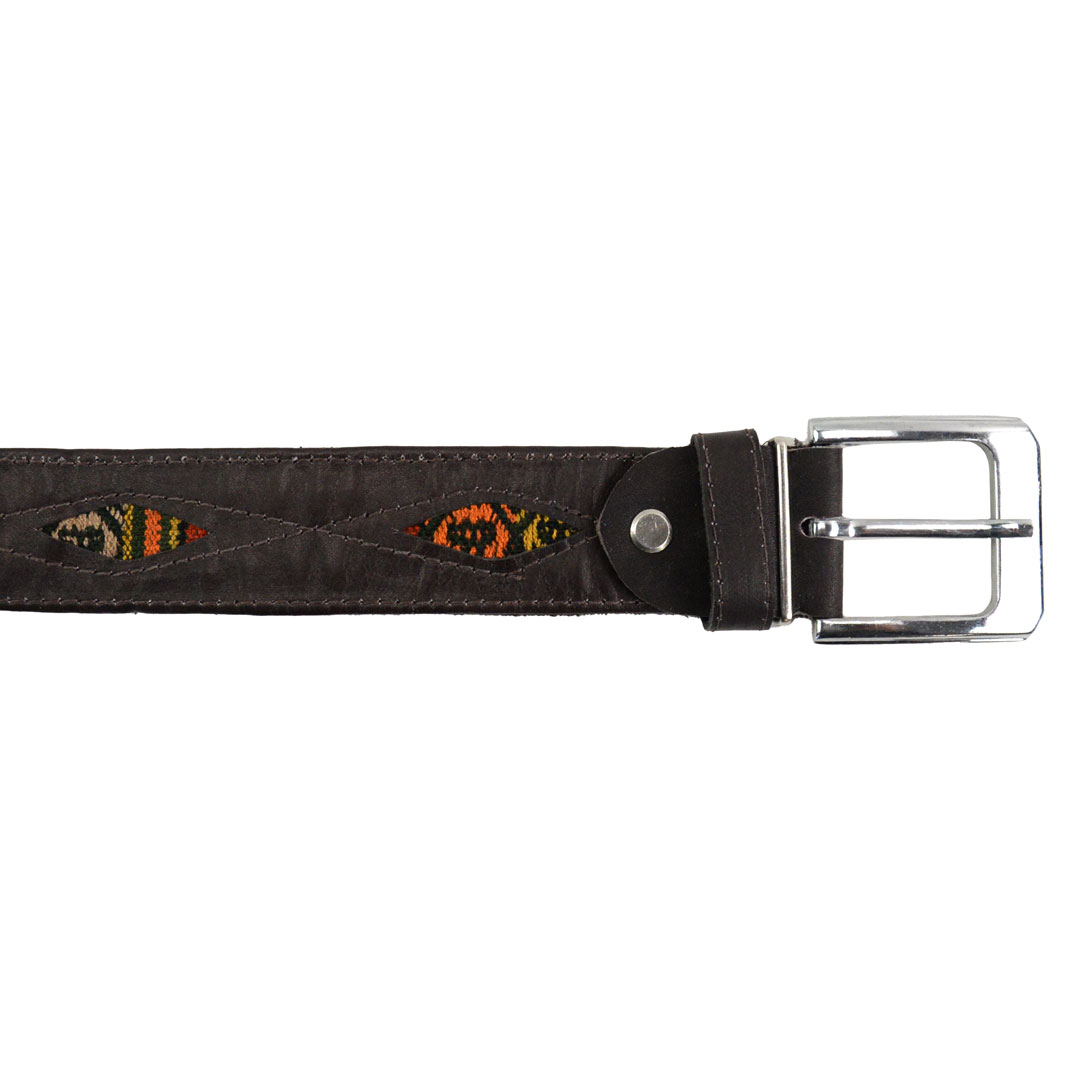 Traditional Incan motifs add color to this traditional leather belt. Available in black and brown leather. Styles: overlay and window. Available in small (39"), medium (43"), large (46") and extra large (51"). Made in Ecuador.