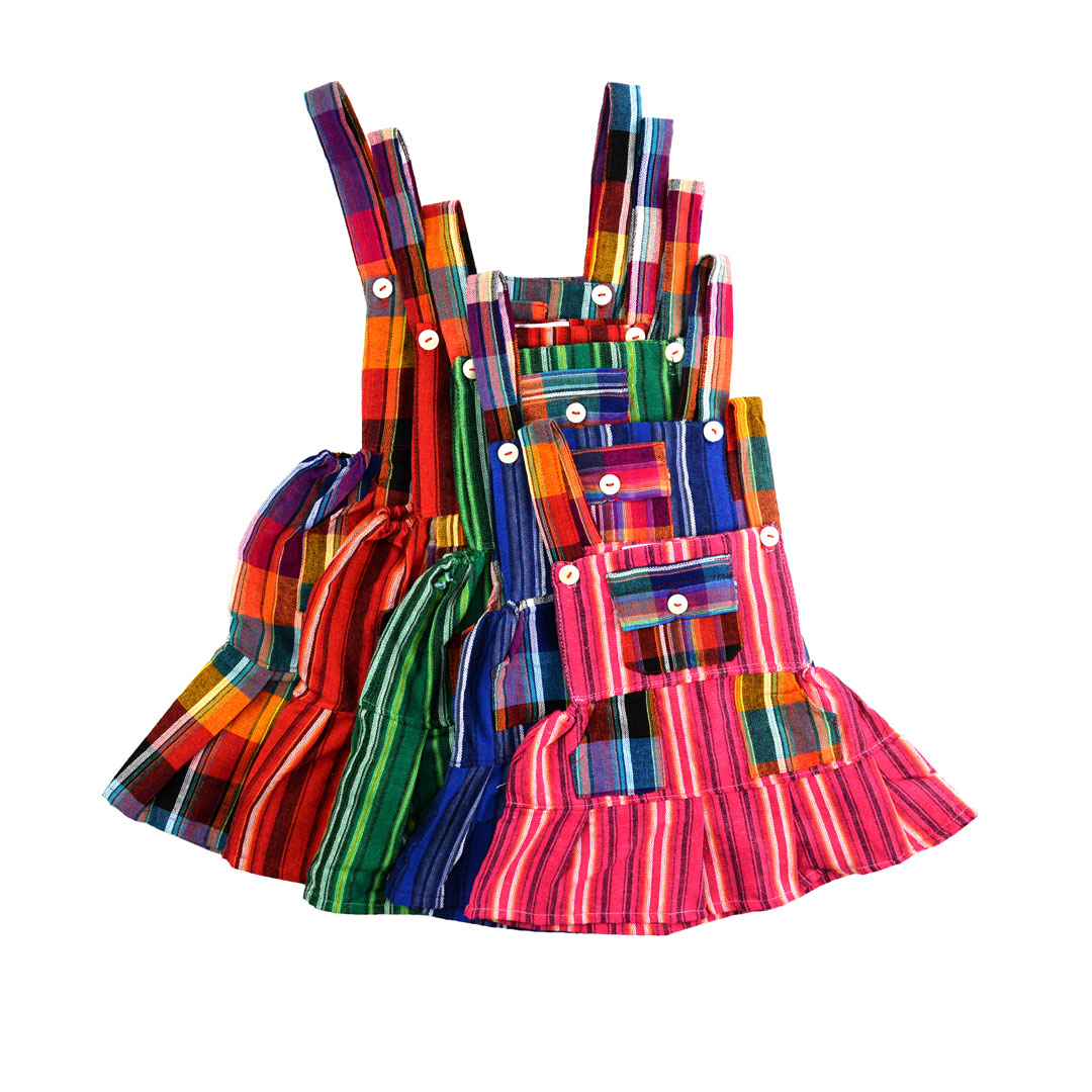 These adorable overalls have one front pocket and two hip pockets. Made in Ecuador