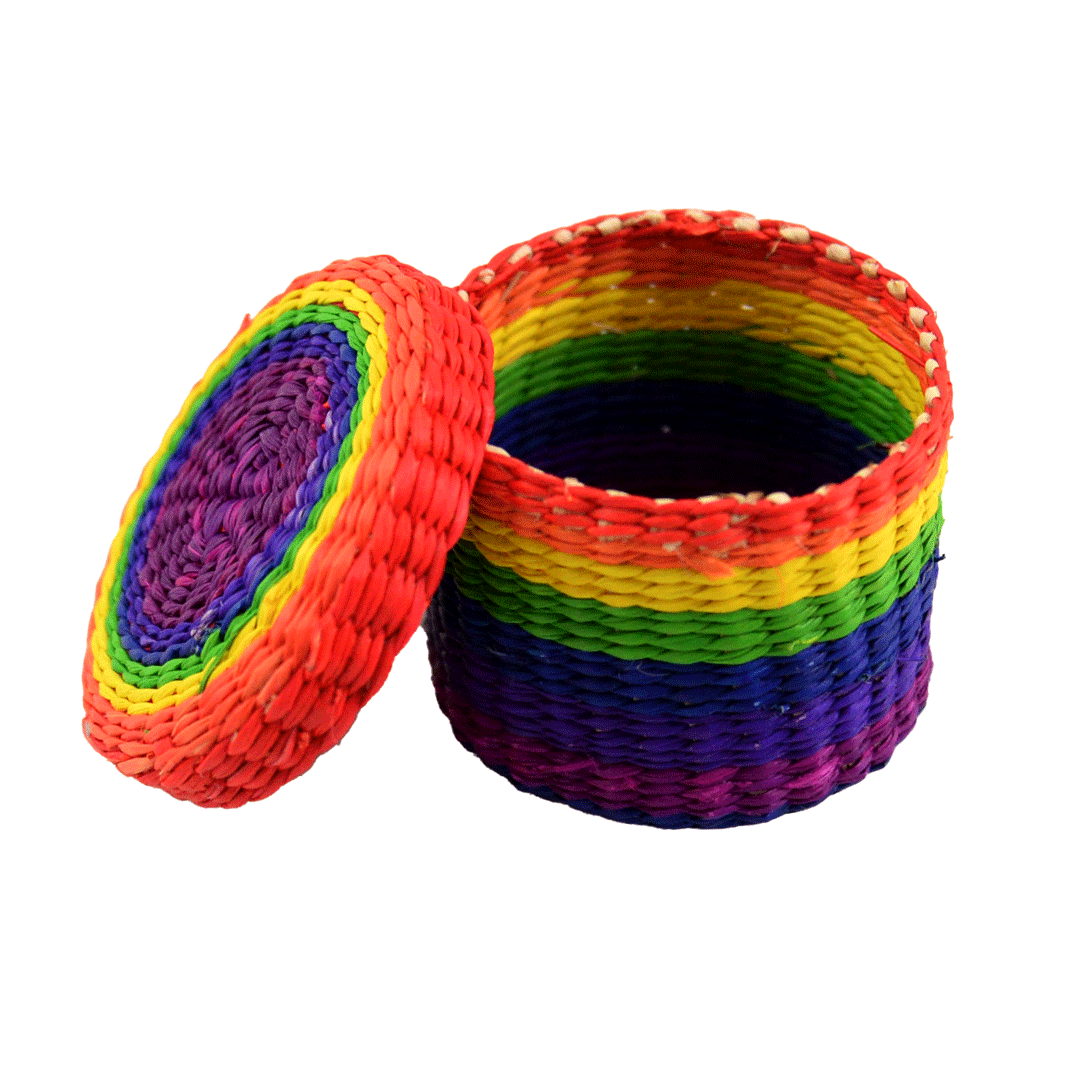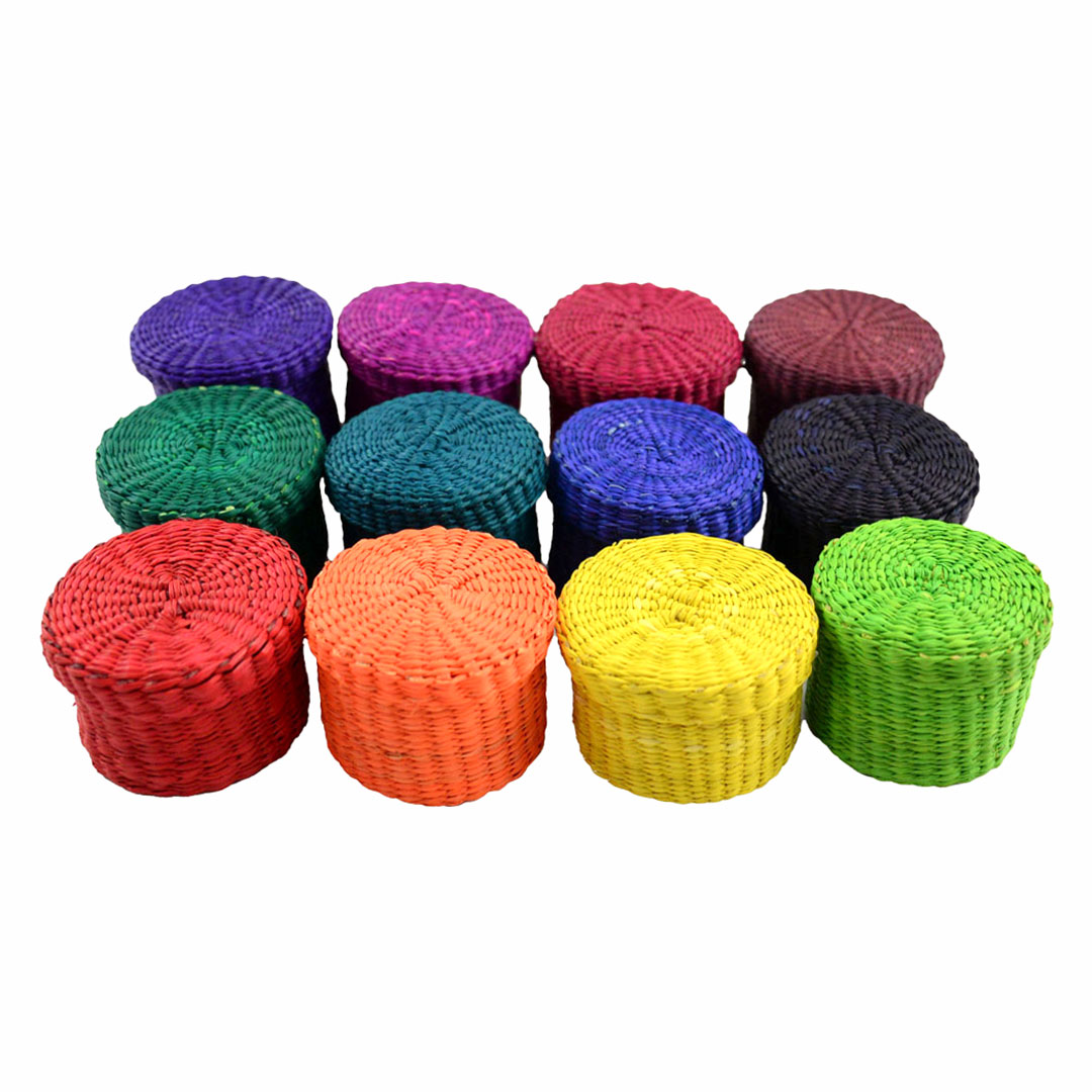 Perfect to store valuables or as a gift box. Available in natural, multi and solid colors. Approximately 21/4" x 11/2". Made in Ecuador.