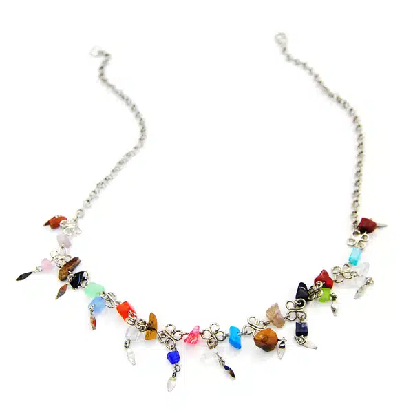 Natural and synthetic stone beads. Clasp closure. 18.5" long. Made in Ecuador.
