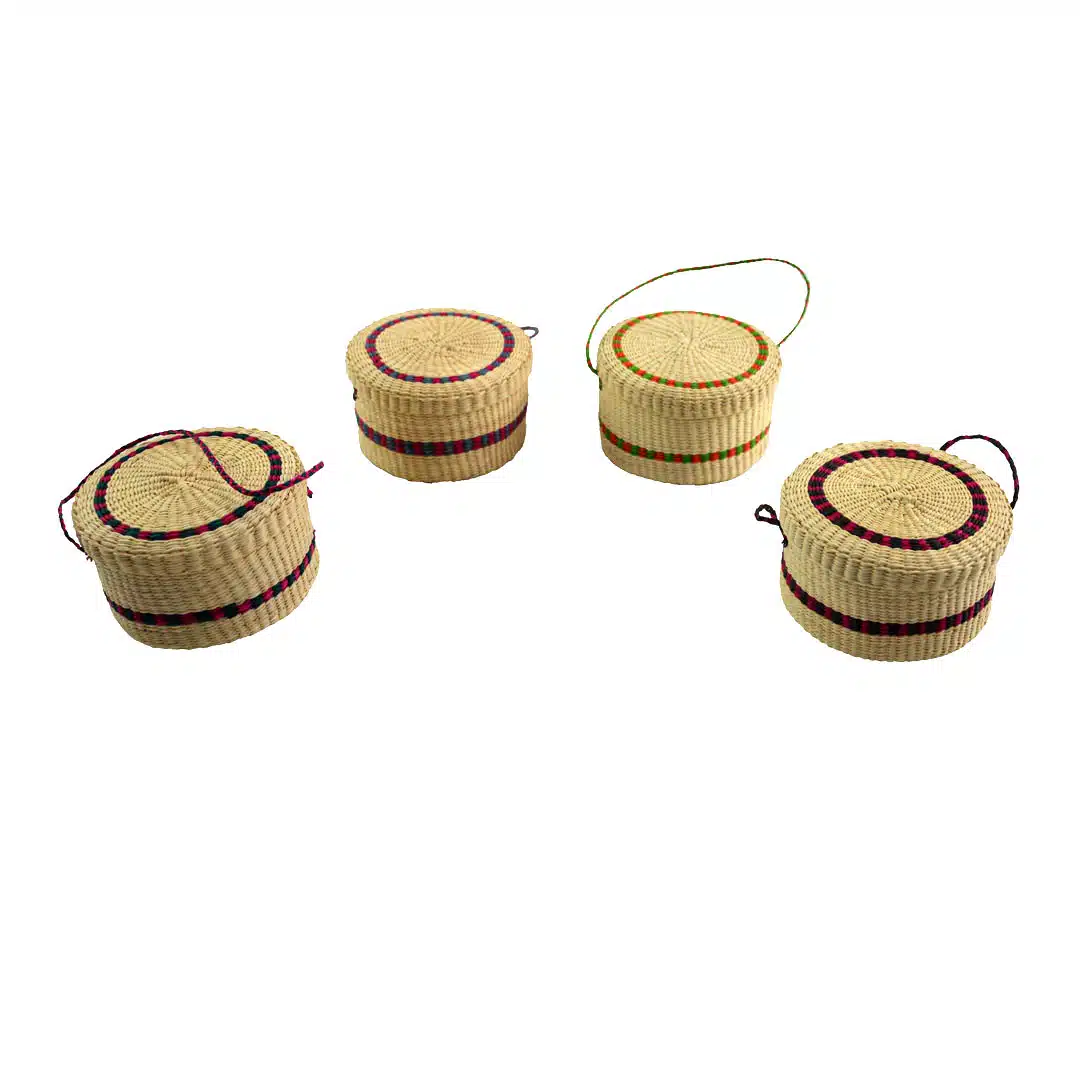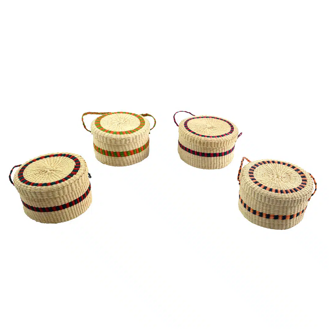 Bundle of 4 sets of nesting mini baskets. Each bundle includes various color combinations. Bundle #1- includes a lime/orange, Made in Ecuador.