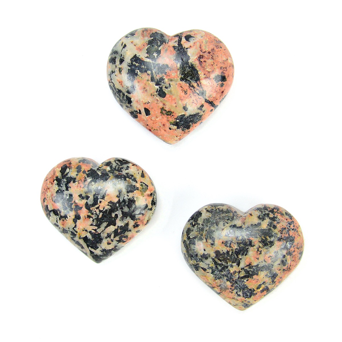 Hand carved and polished, orthoclase heart. Each stone is unique and measures 2" in length or width. Due to the hand-carved nature of this item, some stones may be a little larger or smaller. Mined and carved in Perú.