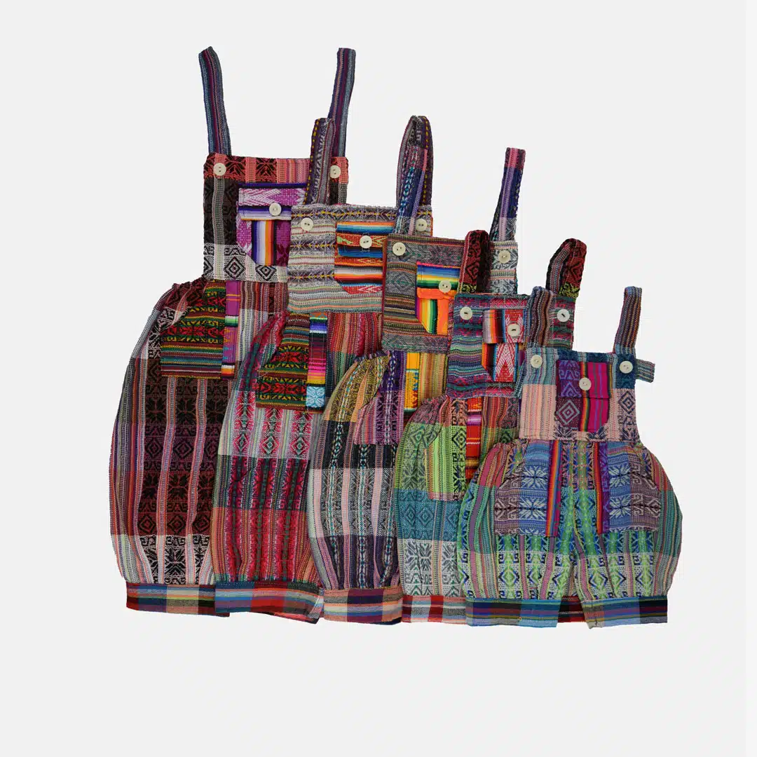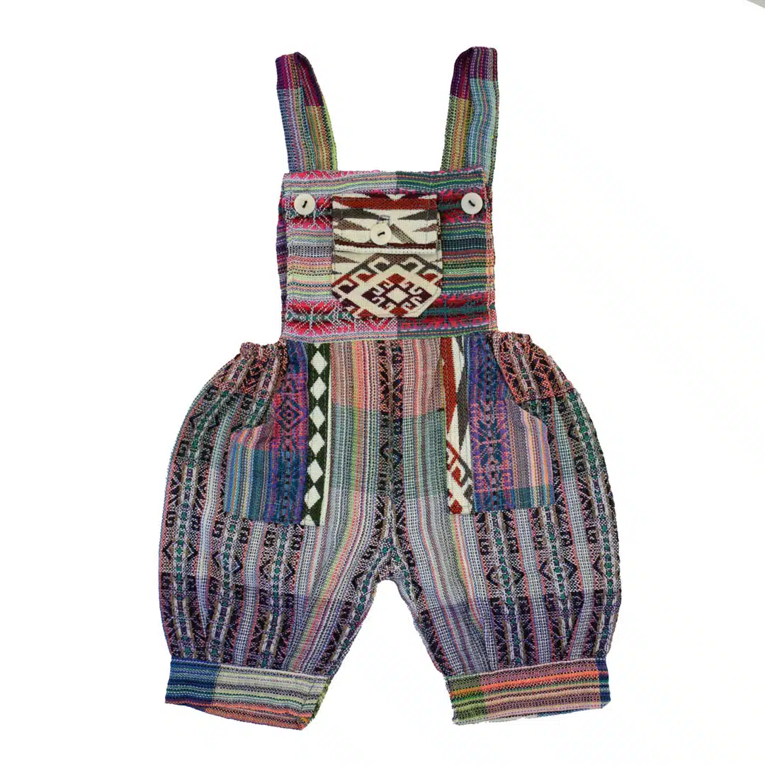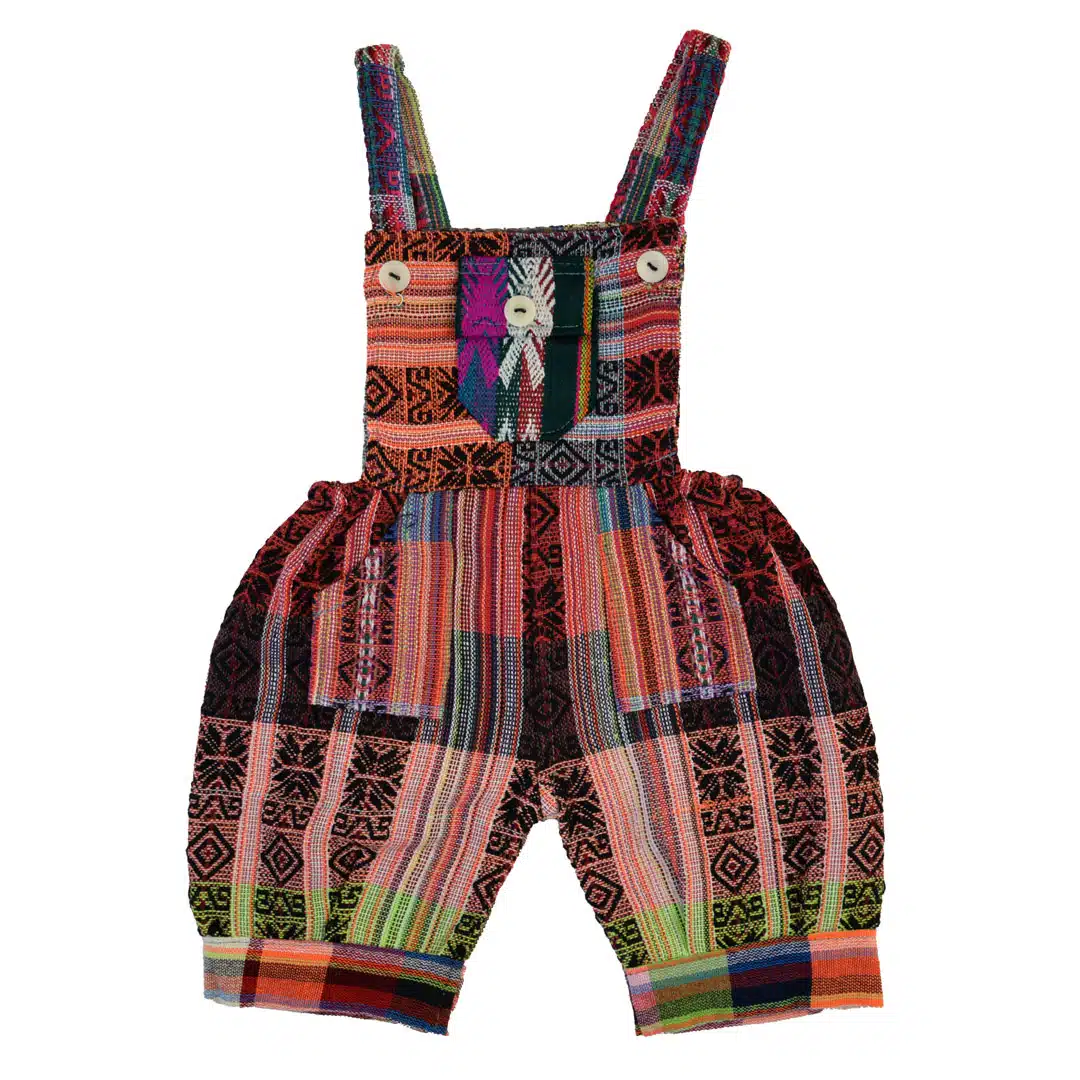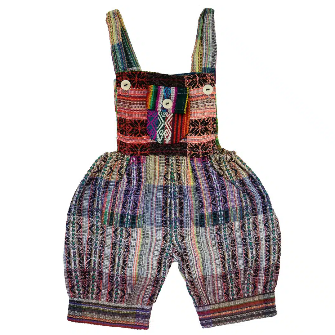 These adorable overalls have one front pocket and two hip pockets. Adjustable straps and elastic hip seams for a more custom fit. Made in Ecuador