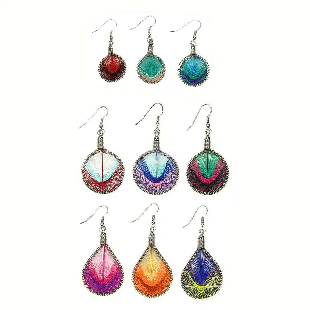 Colorful thread wrapped around a metal coil. Available in a wide variety of colors. Length: 1-2". Made in Perú. Part of our Element-ality line.
