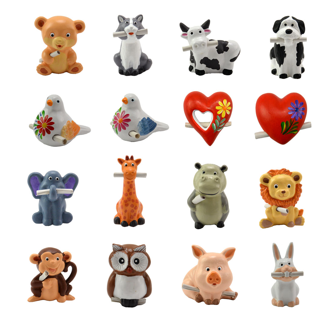 These charming hand-painted messengers offer a unique way for customers to share personalized sentiments. Each ceramic figure includes a miniature paper scroll for custom messages, making them the perfect alternative to traditional greeting cards. Available in over 12 designs, they are ideal for high-impulse gift displays and seasonal gift-giving. Approximately 2" tall. Made in Peru.