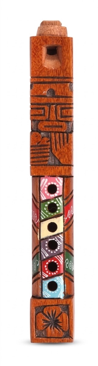 Bring the authentic sounds of the Andes to your store with our traditional Tarka flute. Unlike rounded flutes, the Tarka is characterized by its rectangular wooden body and a unique, whistly tonal quality. Each instrument is hand-carved and decorated with colorful, hand-painted geometric patterns and ancestral imagery. A fascinating choice for world music collectors, educators, or as a unique decorative piece. Made in Peru.