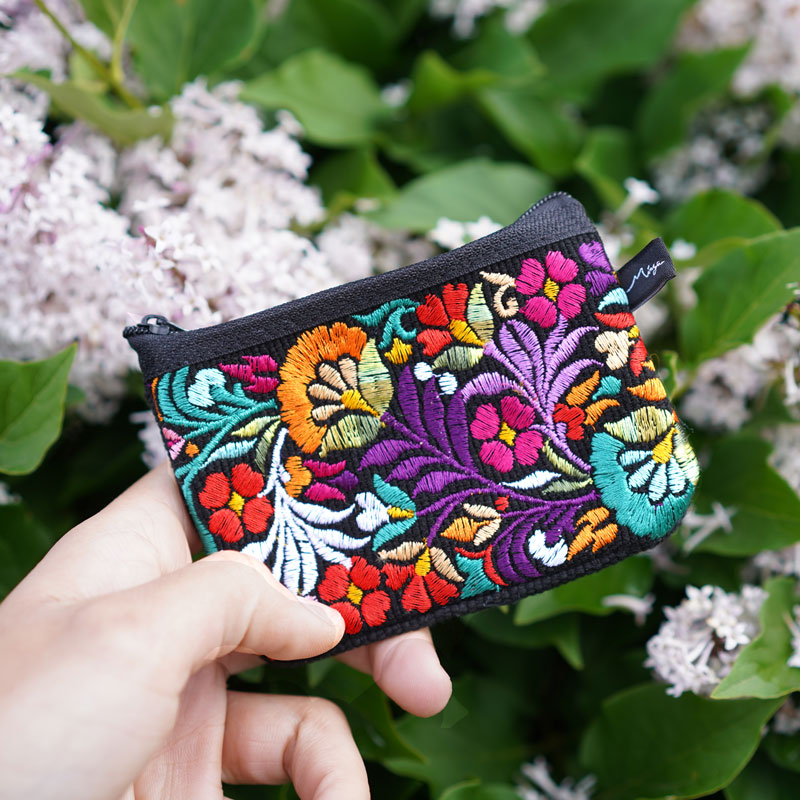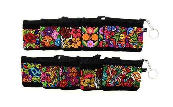 This generously sized and attractively embroidered small purse will get noticed and sold quickly. Acrylic. 4.375" x 3". Made in Ecuador.