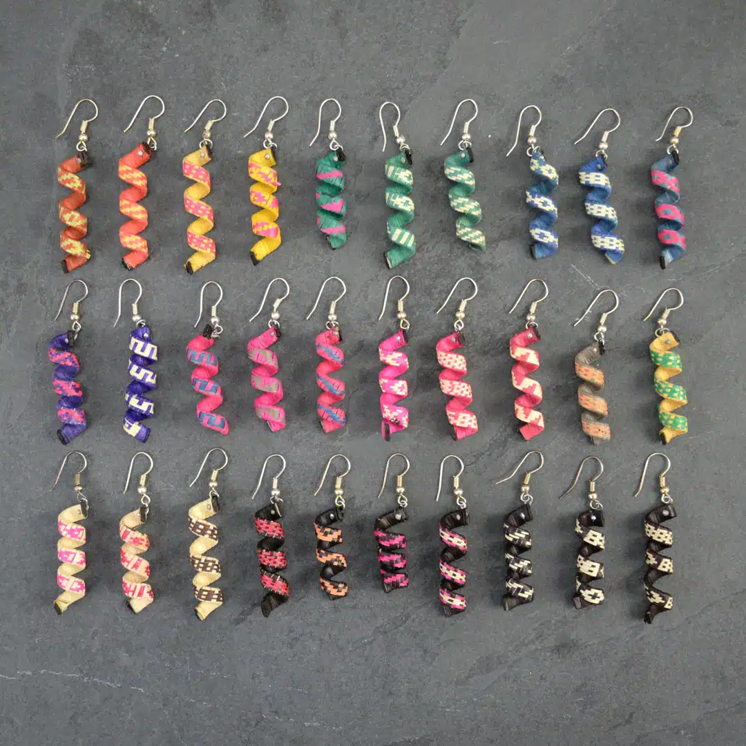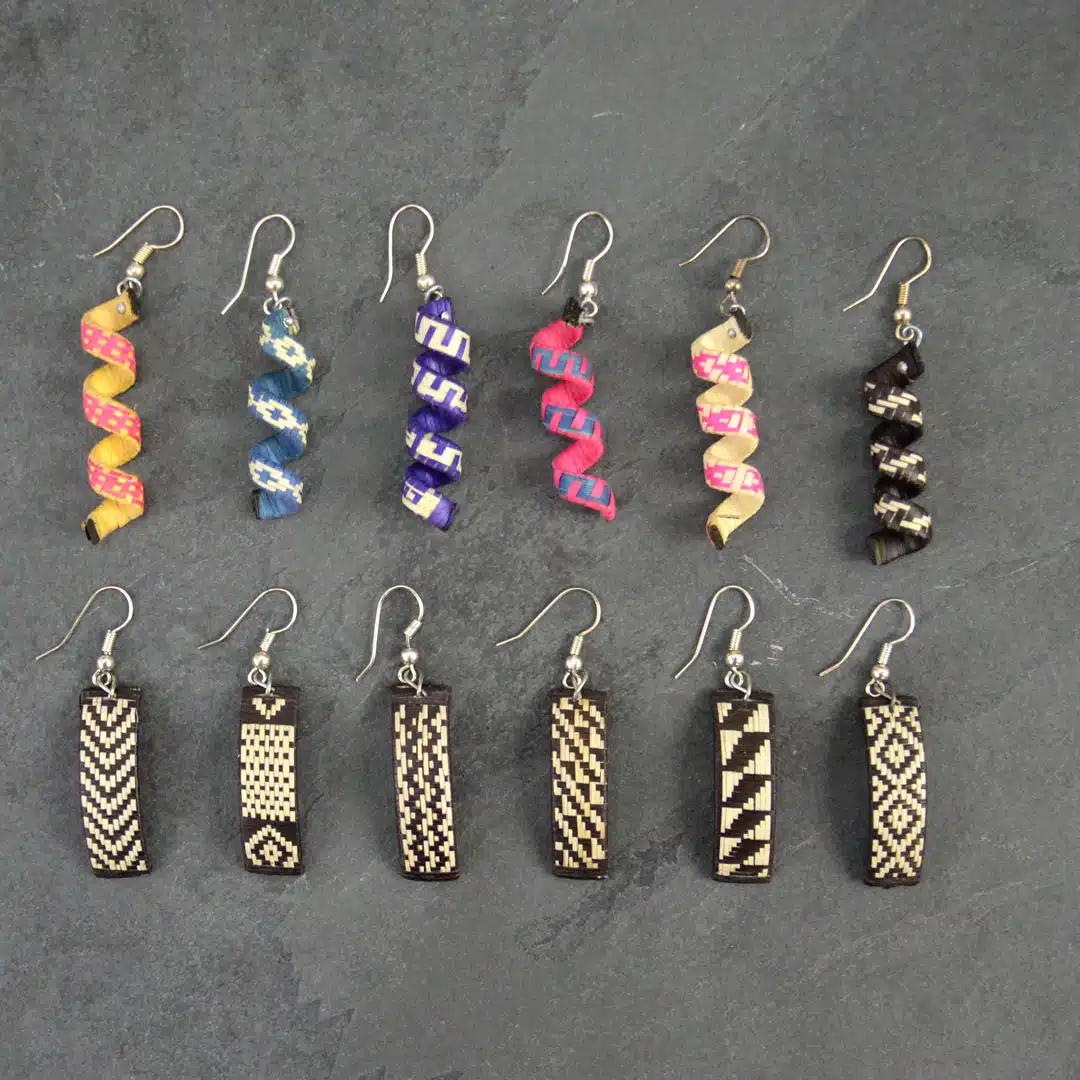 Tiny grass fibers are painstakingly woven into wearable art. Variety of colors. Dimensions are approximate.